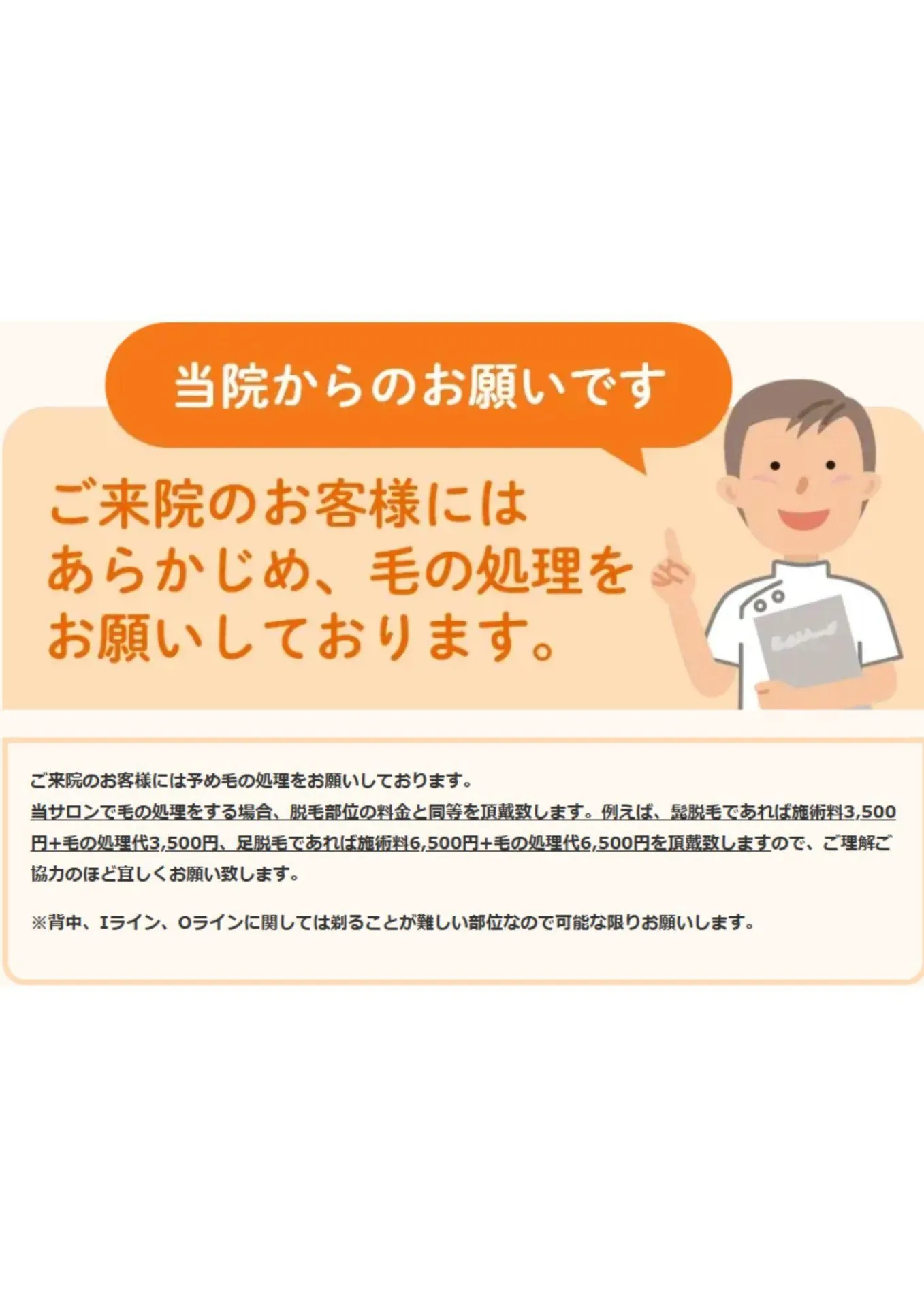 ツルツルは嫌なので薄くしたい、全部無くすのは恥ずかしいので部分的に残したいなどのご要望にお応えします。ご要望やご不安はカウンセリング時にお聞きしますのでご安心ください。