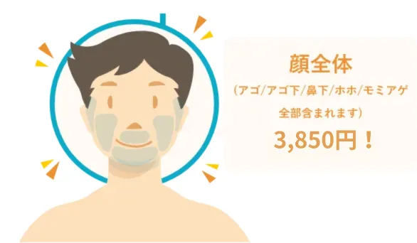 ヒゲ(脱毛顔全体)1回3,850円(税込み)
